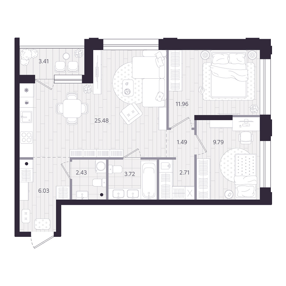 Студии от 28 м² для первых самостоятельных шагов до просторных резиденций до 126 м² для большой семьи.