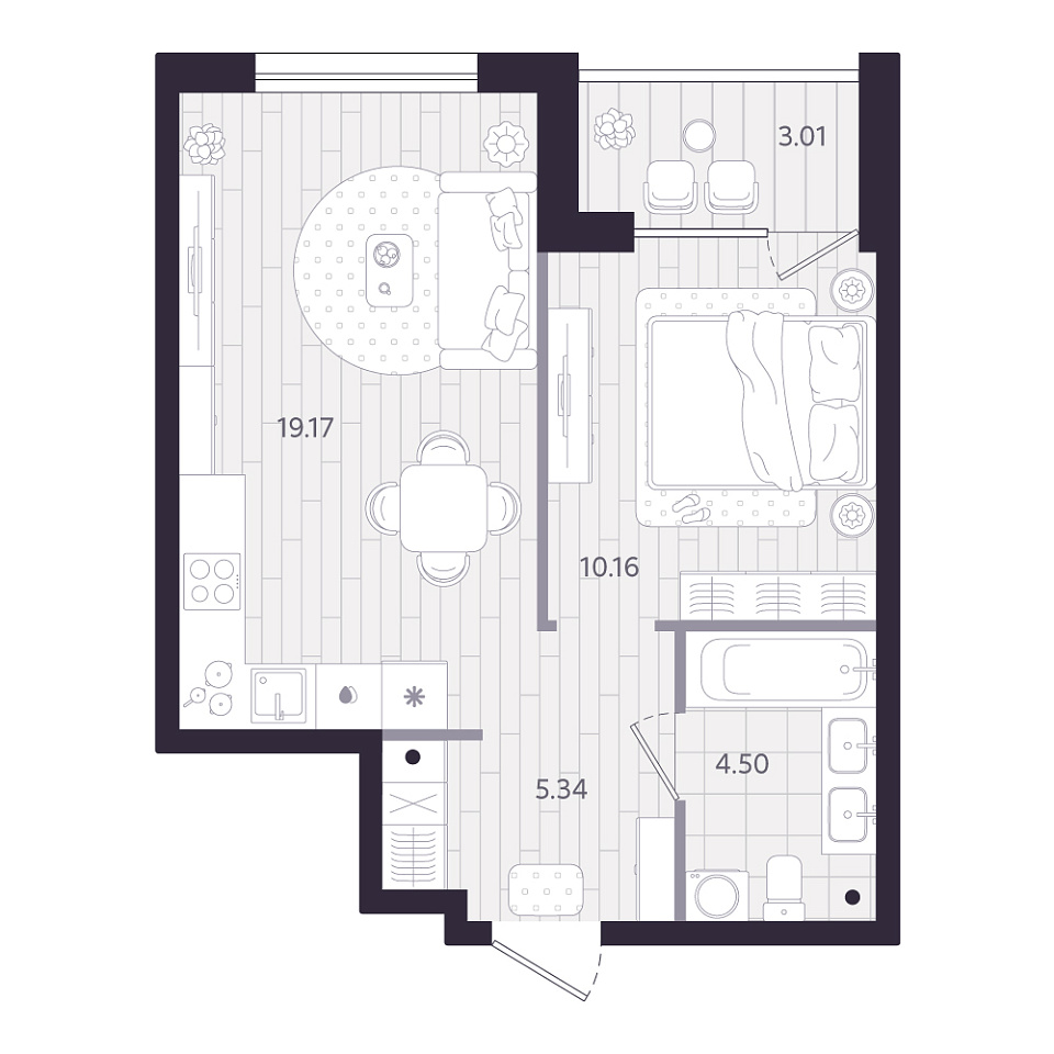 Студии от 28 м² для первых самостоятельных шагов до просторных резиденций до 126 м² для большой семьи.