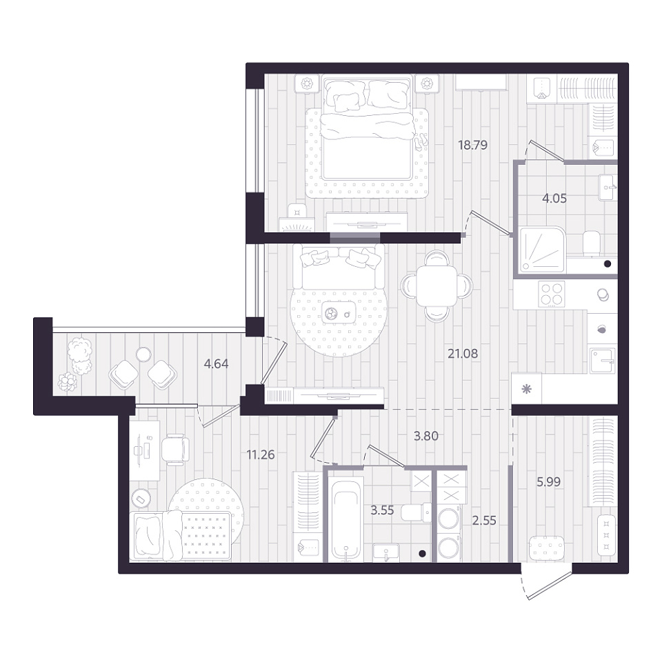 2-комнатная • 73,39 м²