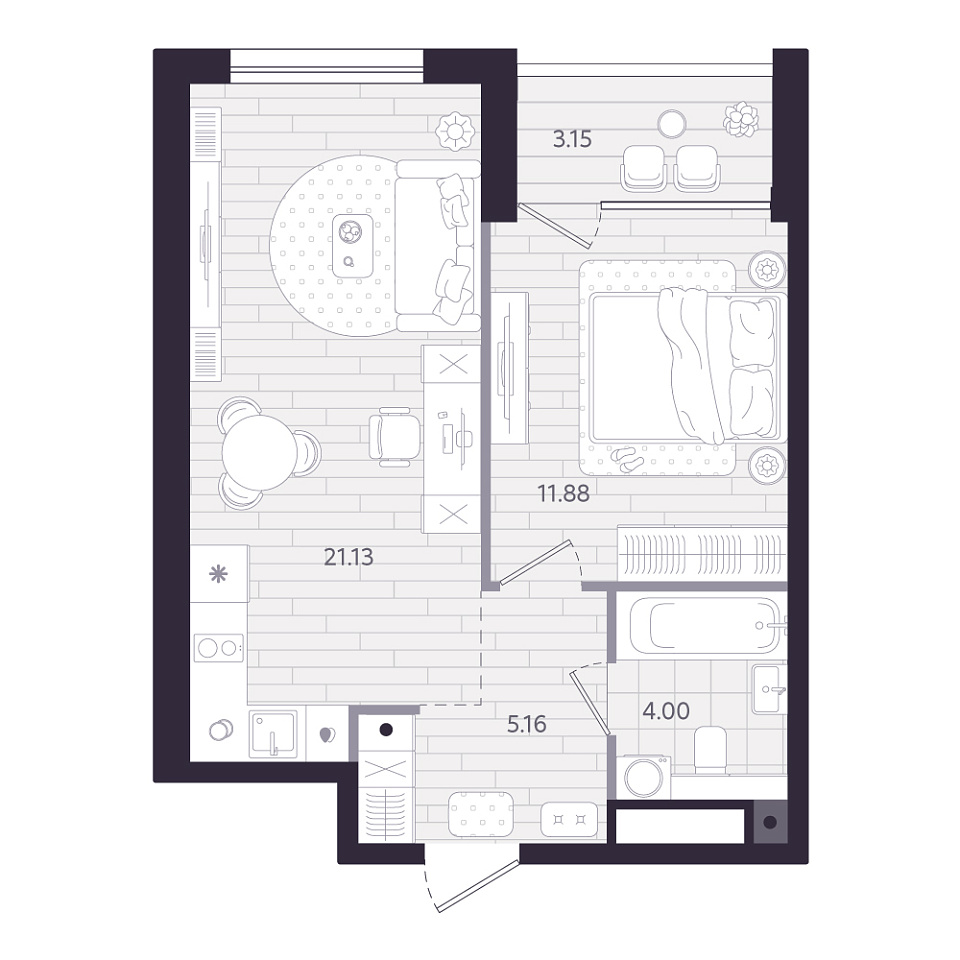 Студии от 28 м² для первых самостоятельных шагов до просторных резиденций до 126 м² для большой семьи.