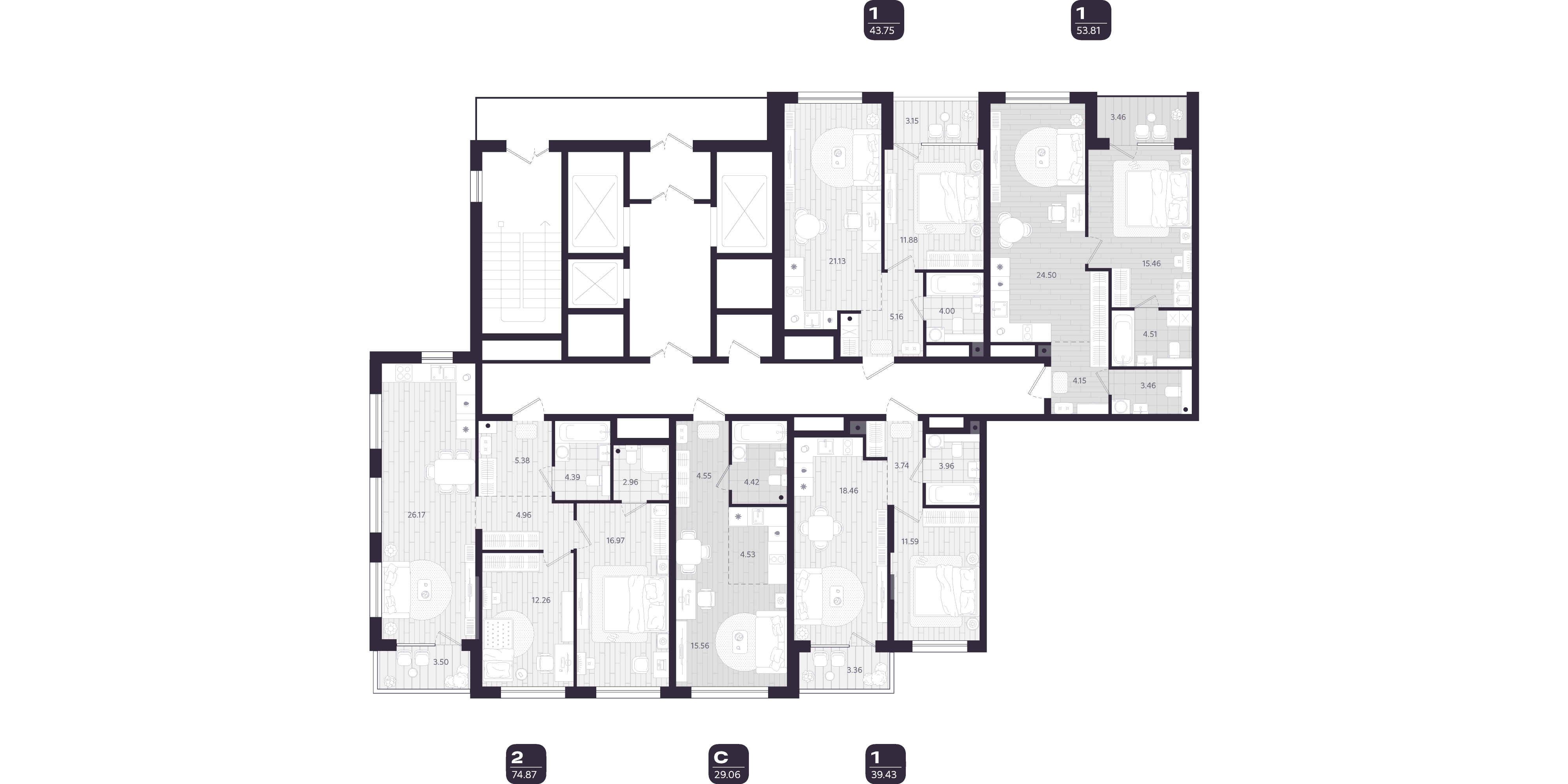 2-комнатная, 74,87м², 18 этаж