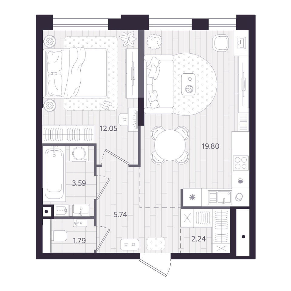 1-комнатная • 45,21 м²