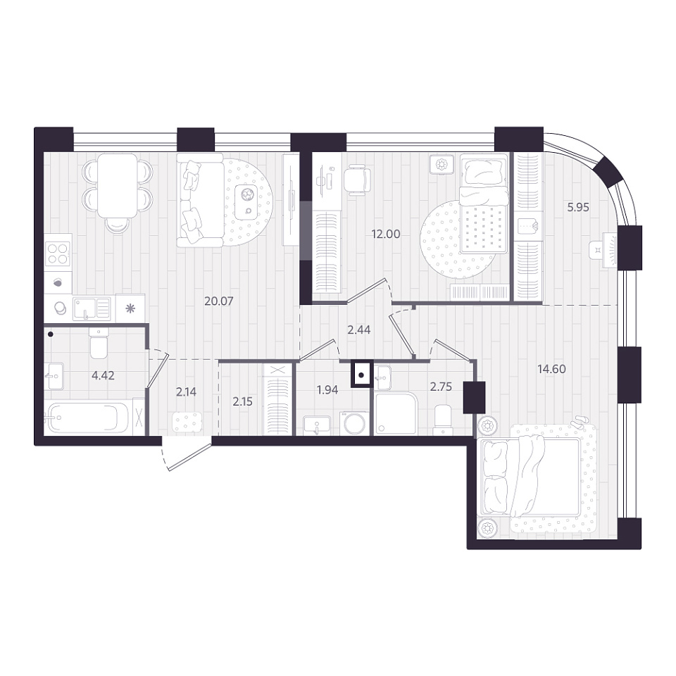 2-комнатная • 68,46 м²