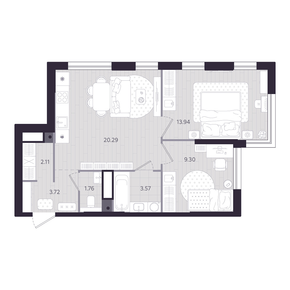 • Площадь, м² 54.69 м²