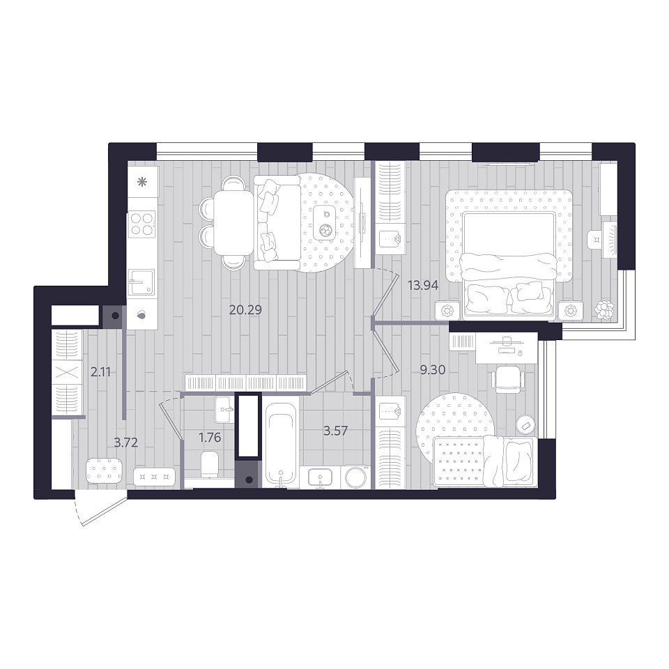 • Площадь, м² 54.69 м²