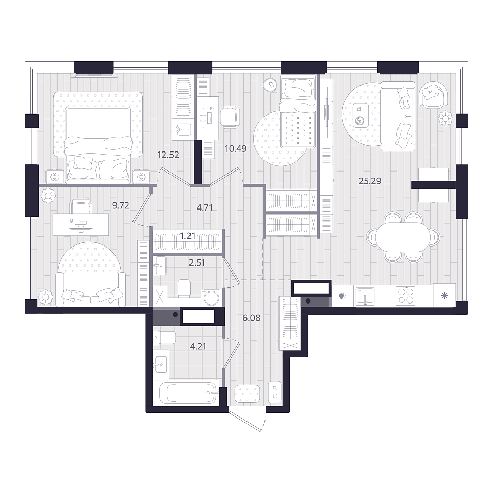 3-комнатная, 76,74м², 8 этаж