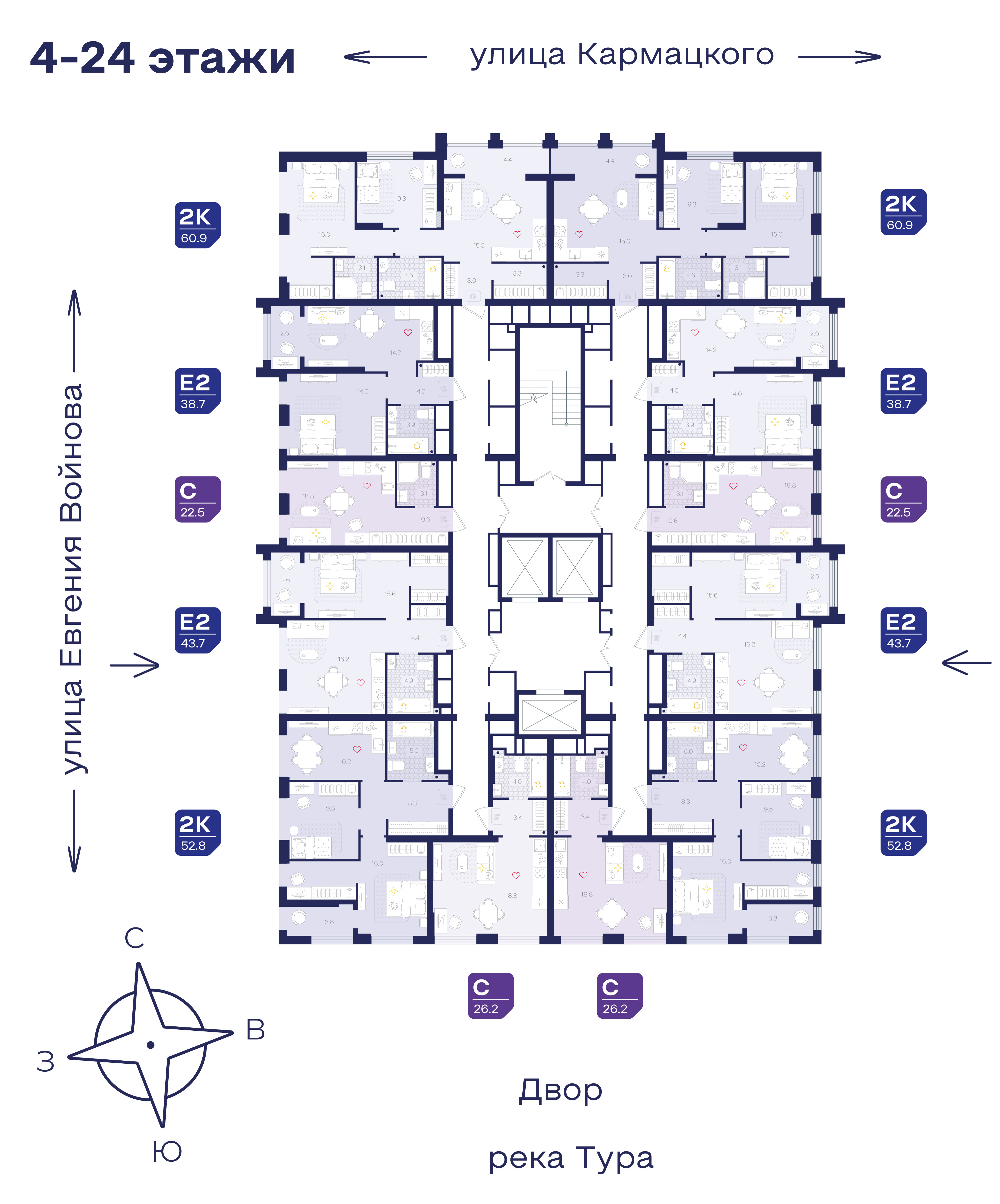 Жилой комплекс расположен на левом берегу Туры по центру между 2 крупных магистралей города, при этом, в окружении парков и озер. Из большинства квартир открываются притягательные виды на реку и город