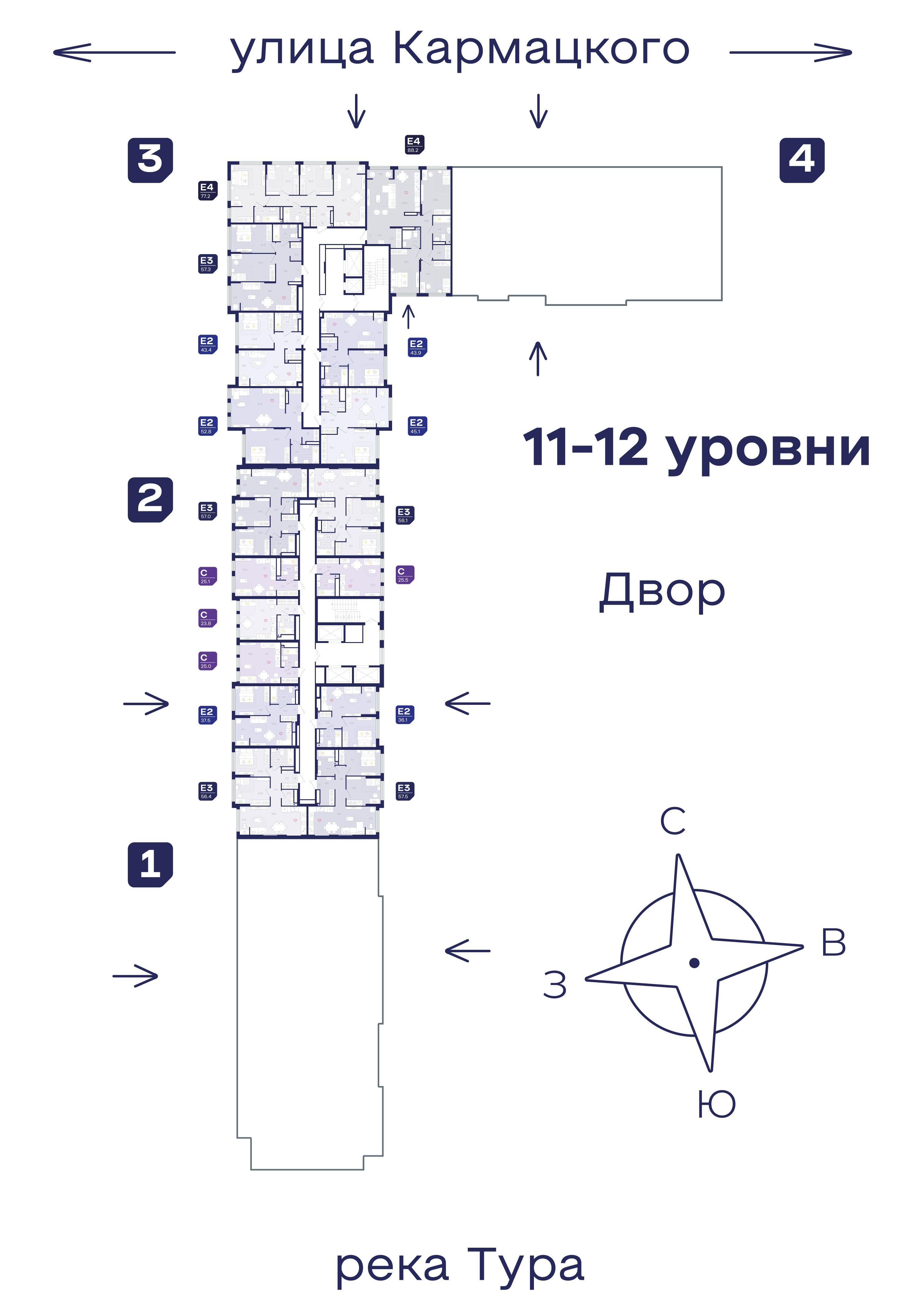 Жилой комплекс расположен на левом берегу Туры по центру между 2 крупных магистралей города, при этом, в окружении парков и озер. Из большинства квартир открываются притягательные виды на реку и город