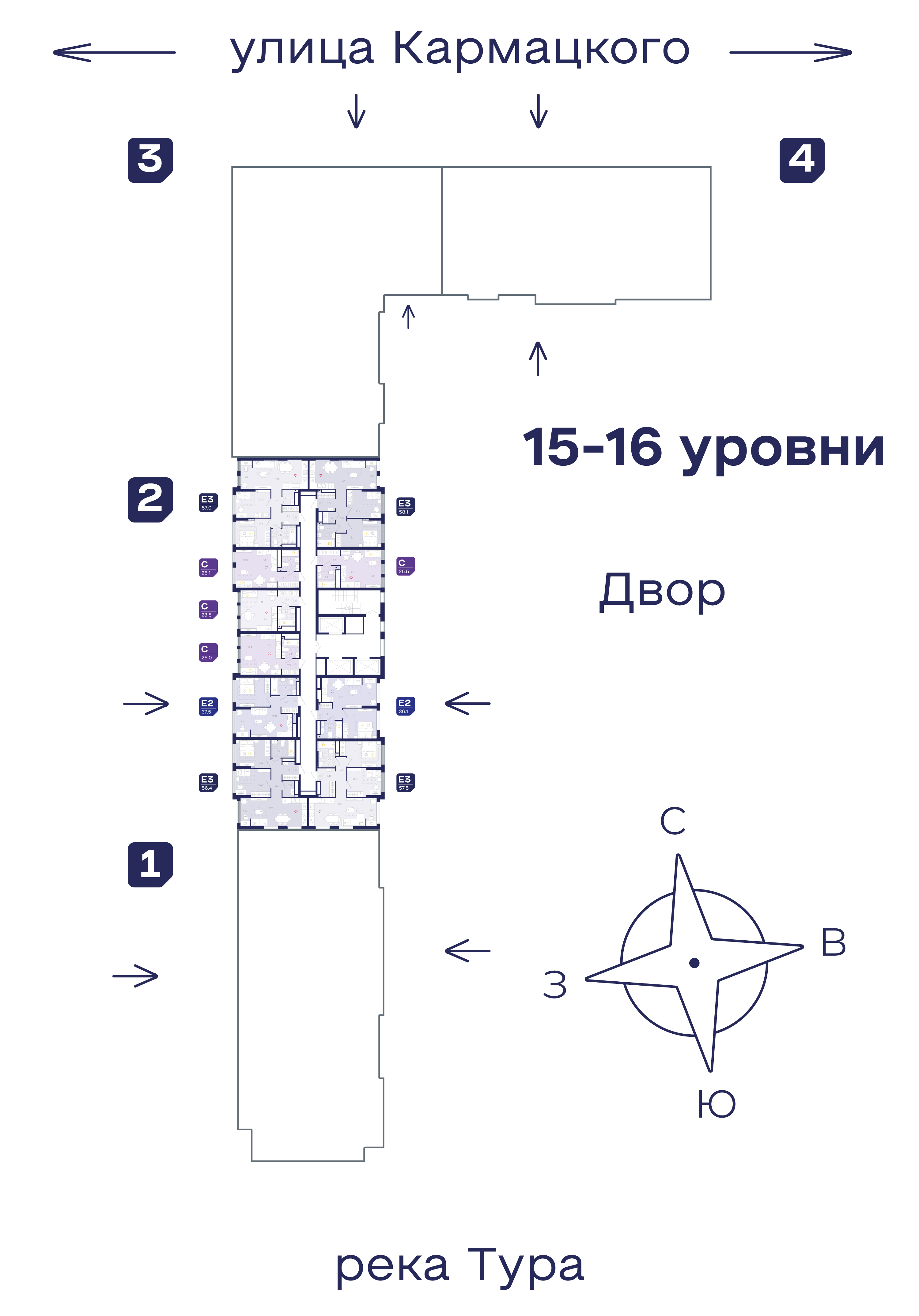 Жилой комплекс расположен на левом берегу Туры по центру между 2 крупных магистралей города, при этом, в окружении парков и озер. Из большинства квартир открываются притягательные виды на реку и город