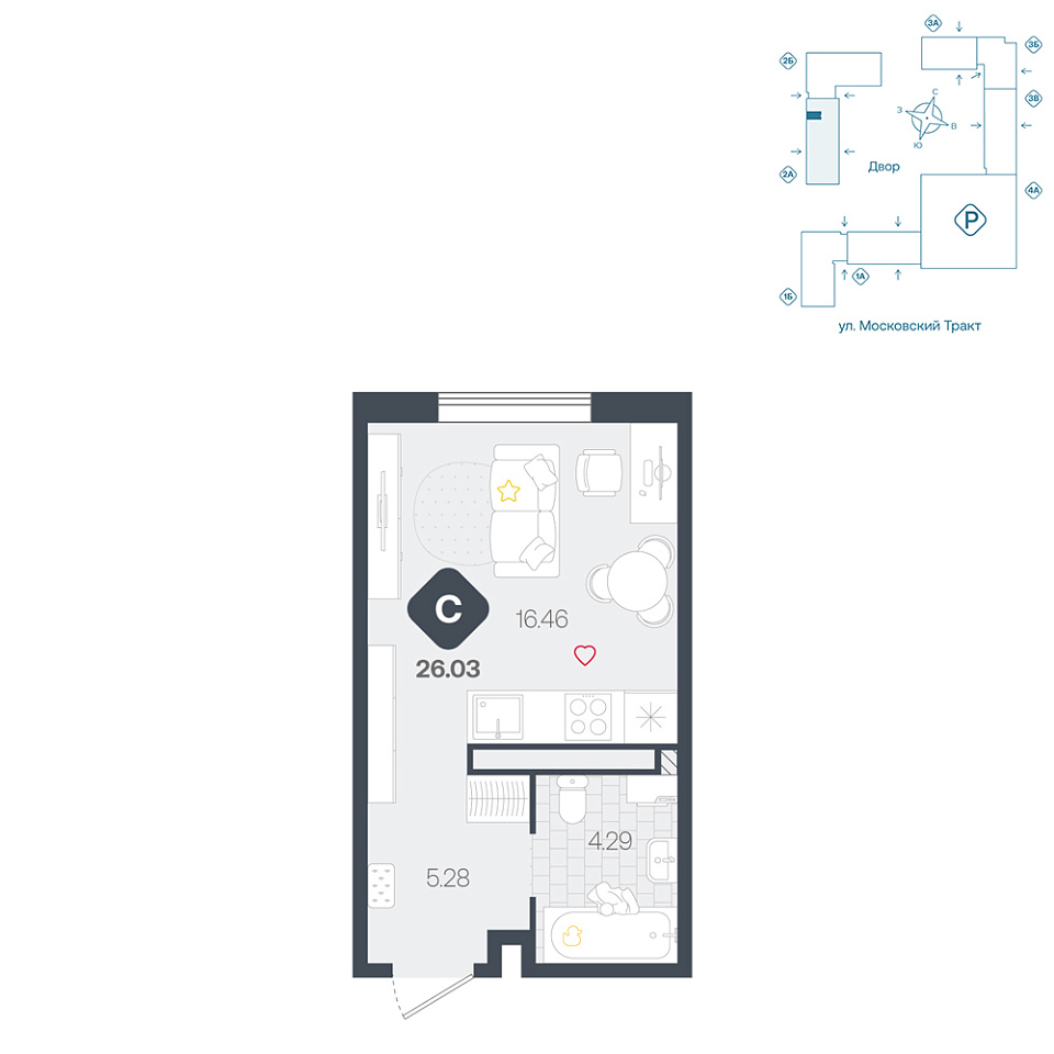 Студия • 26,03 м²