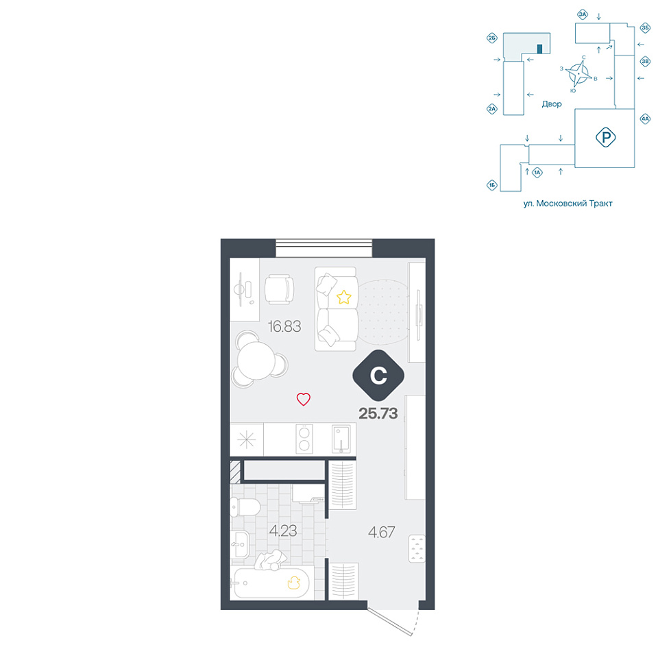 • Площадь, м² 25.73 м²